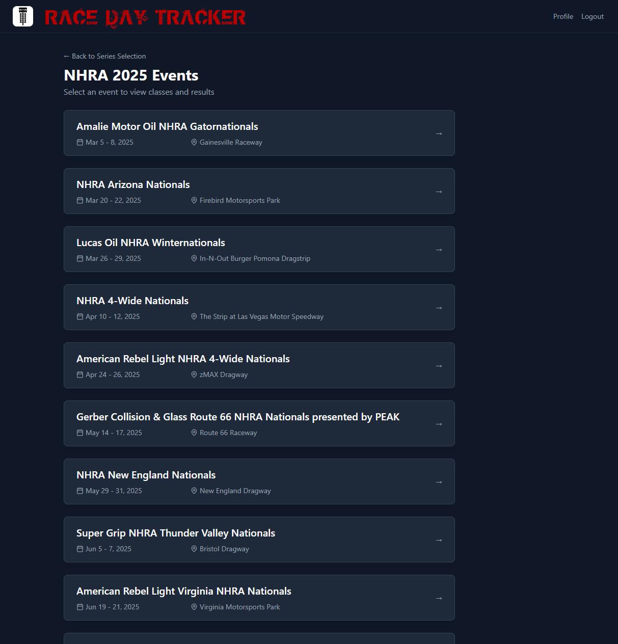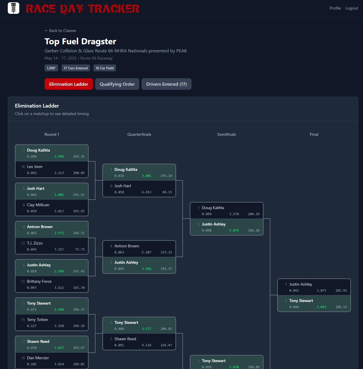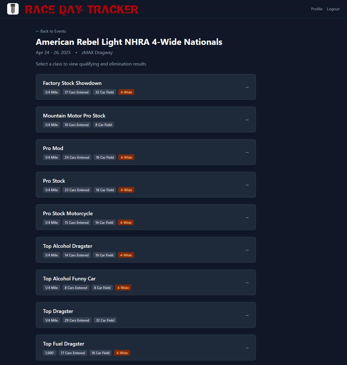 Drag racing results straight to your device!
